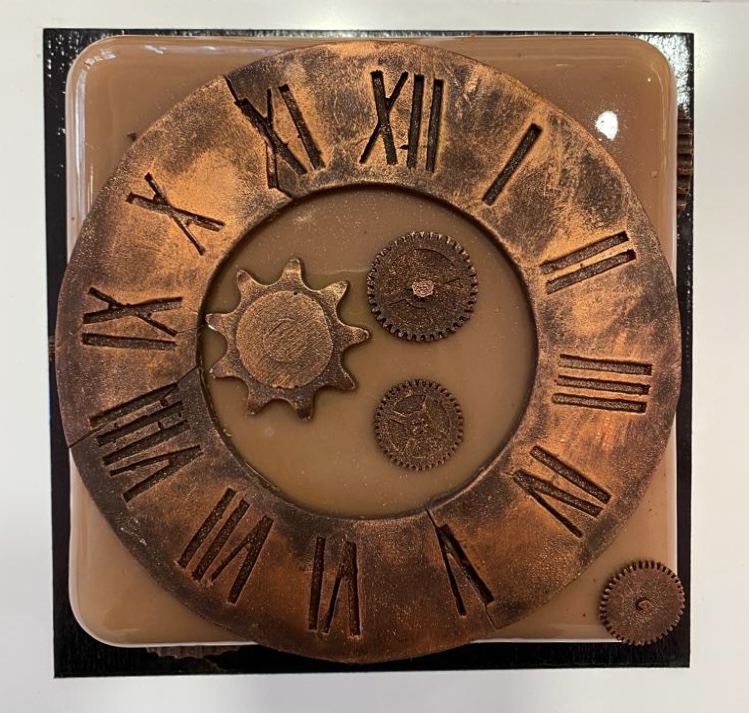 Une mousse délicate à la poire, un cœur poire et caramel relevé d’un praliné pécan, le tout sur un biscuit tigré, enrobé de chocolat